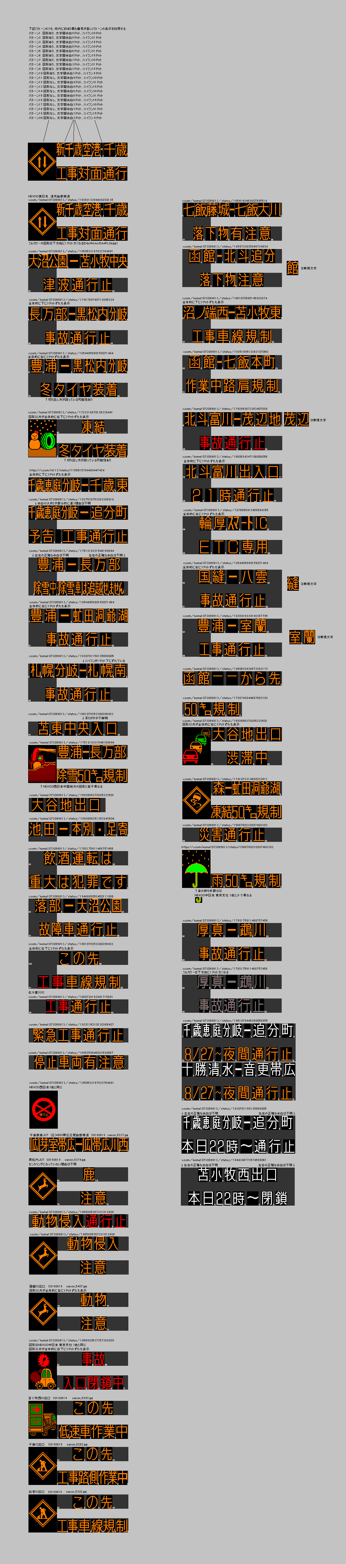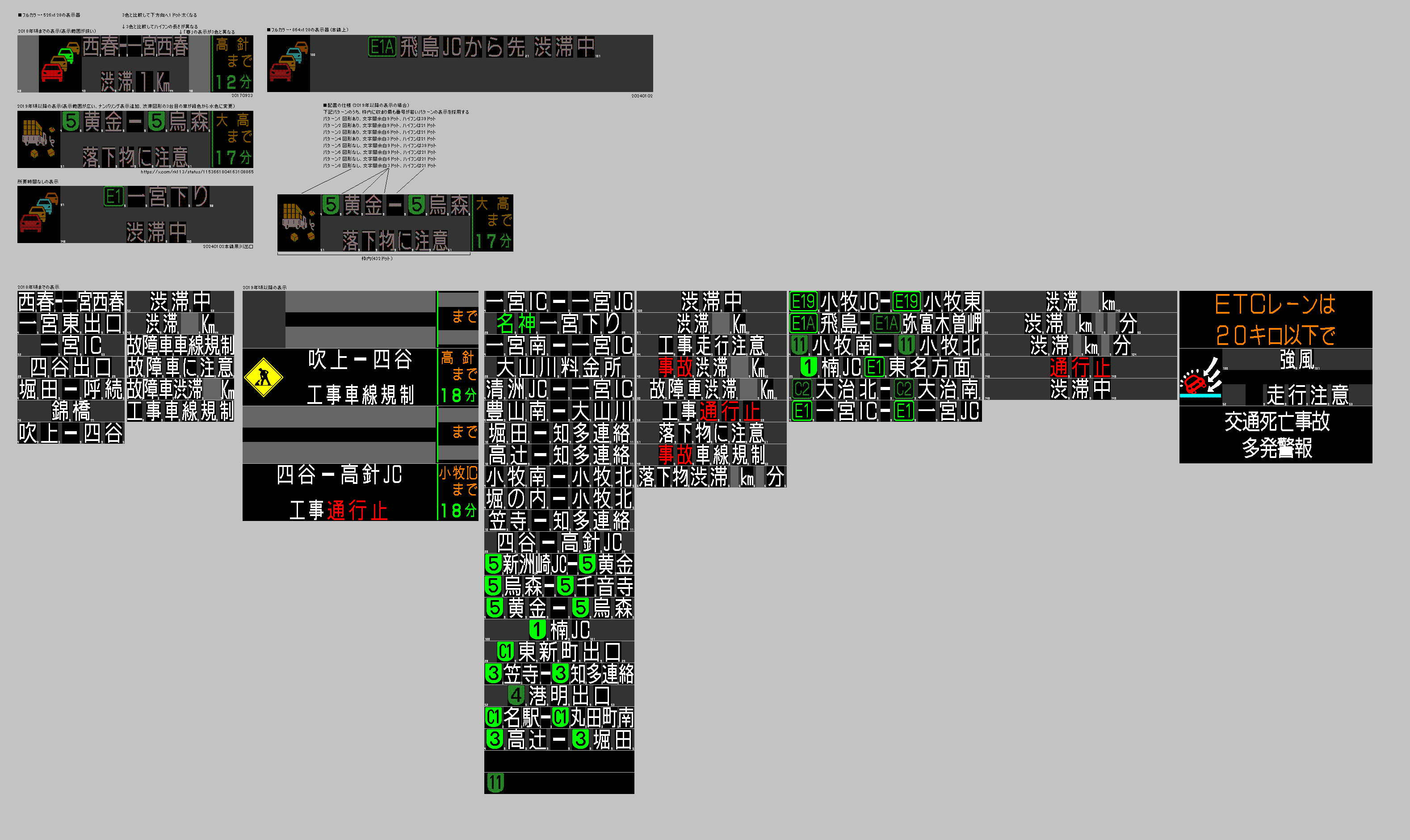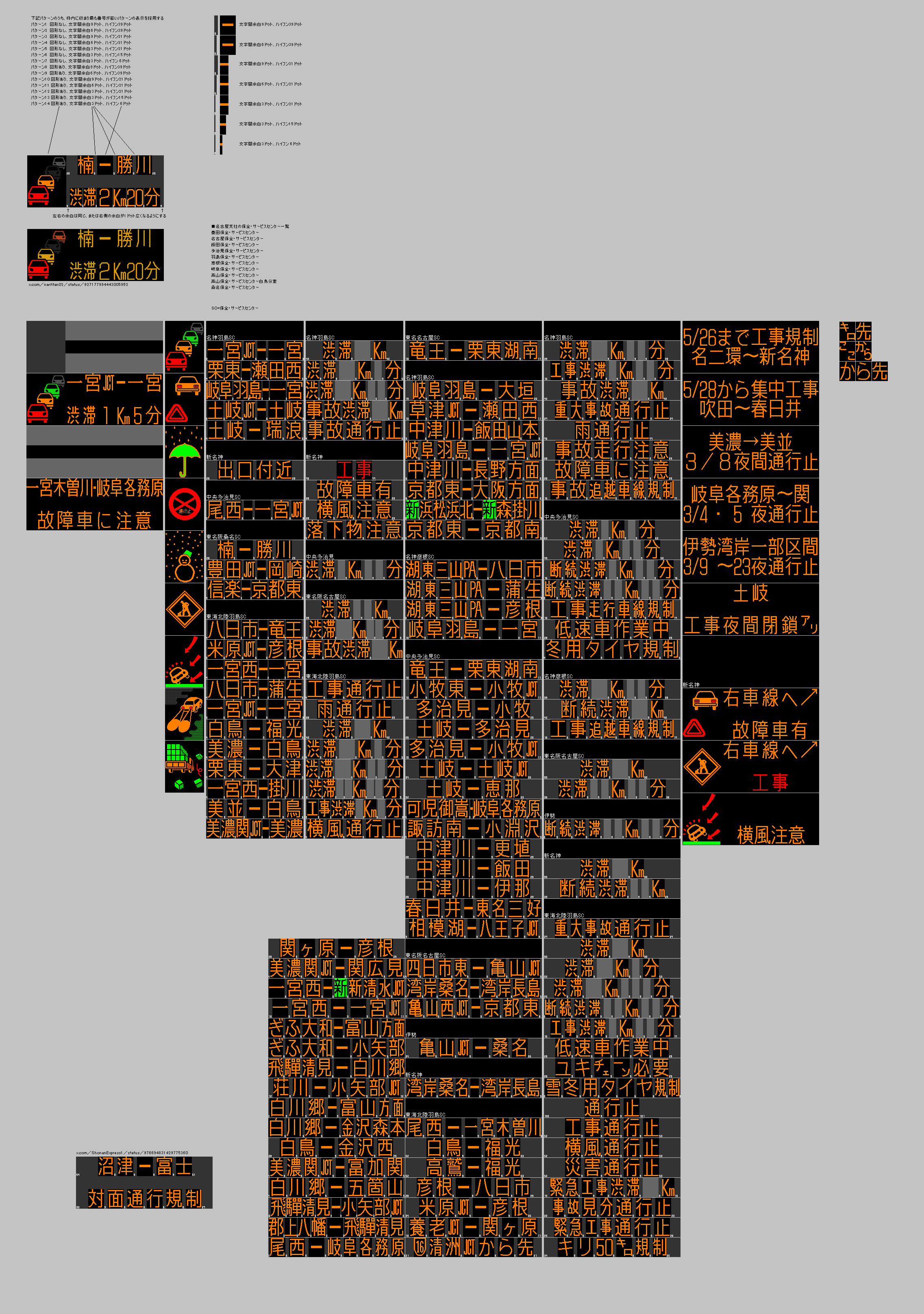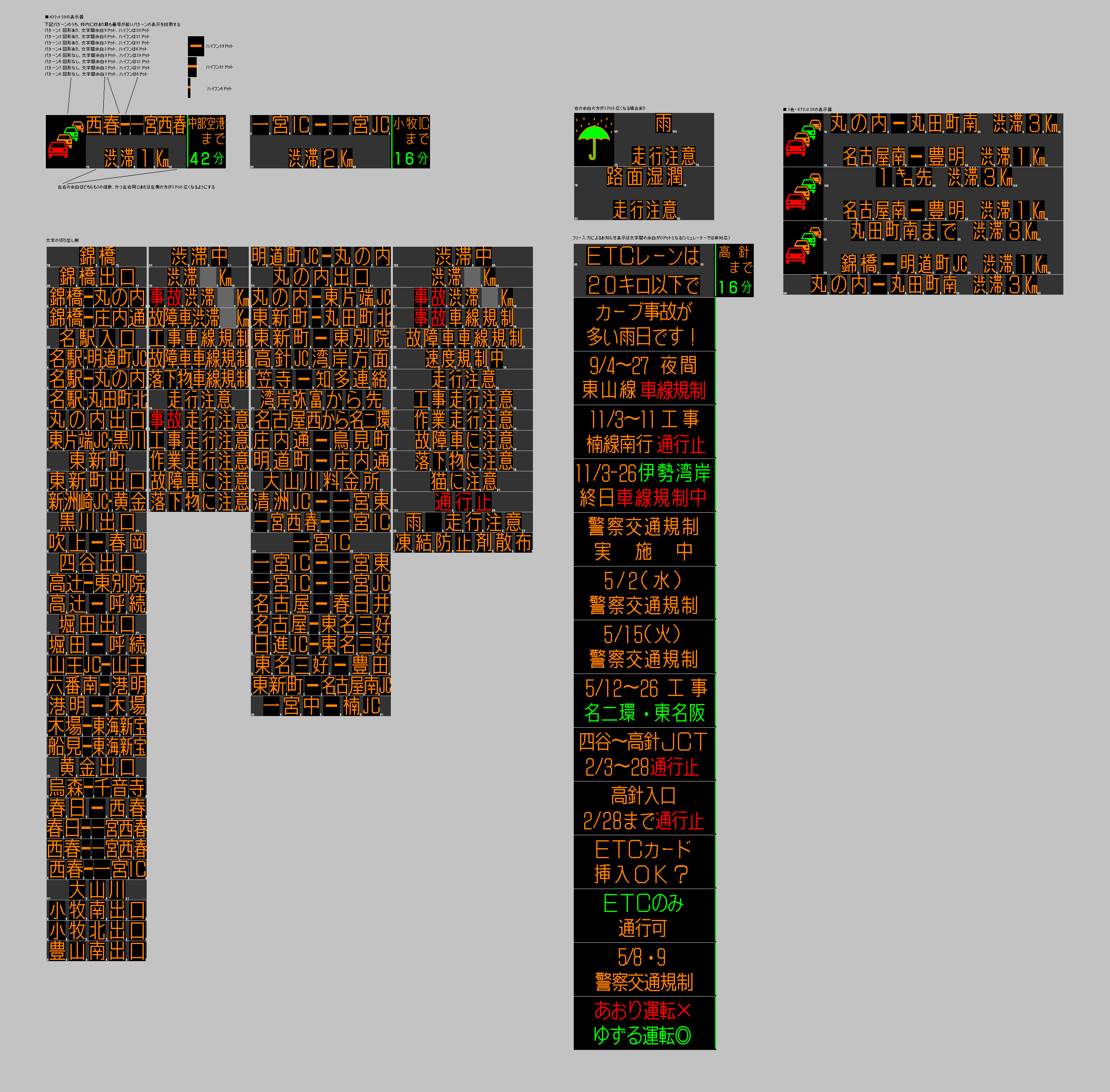 NEXCO各社(高速道路)や名古屋高速の道路情報板(LED電光掲示板)の表示を自由に変更できるシミュレーターを作りました。