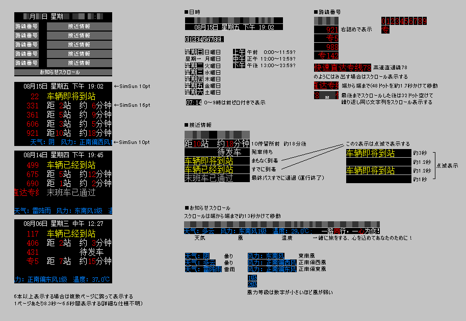 - 現地語では「电子站牌」と呼ばれているようです。「电子站牌」で画像検索すると現地の写真が見つかります。