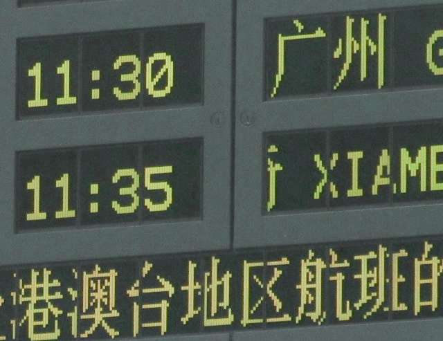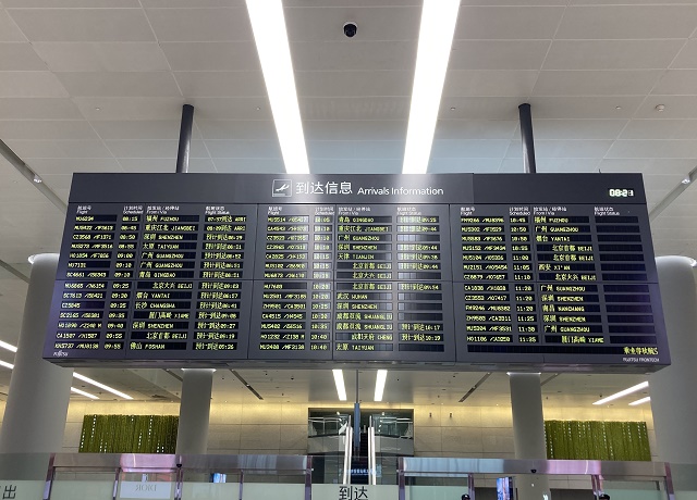 这是中国上海虹桥国际机场设置的到达信息显示的模拟器。