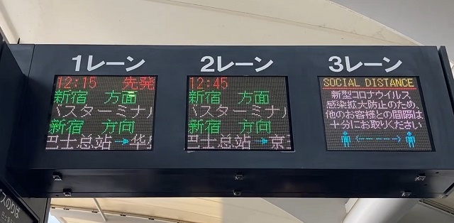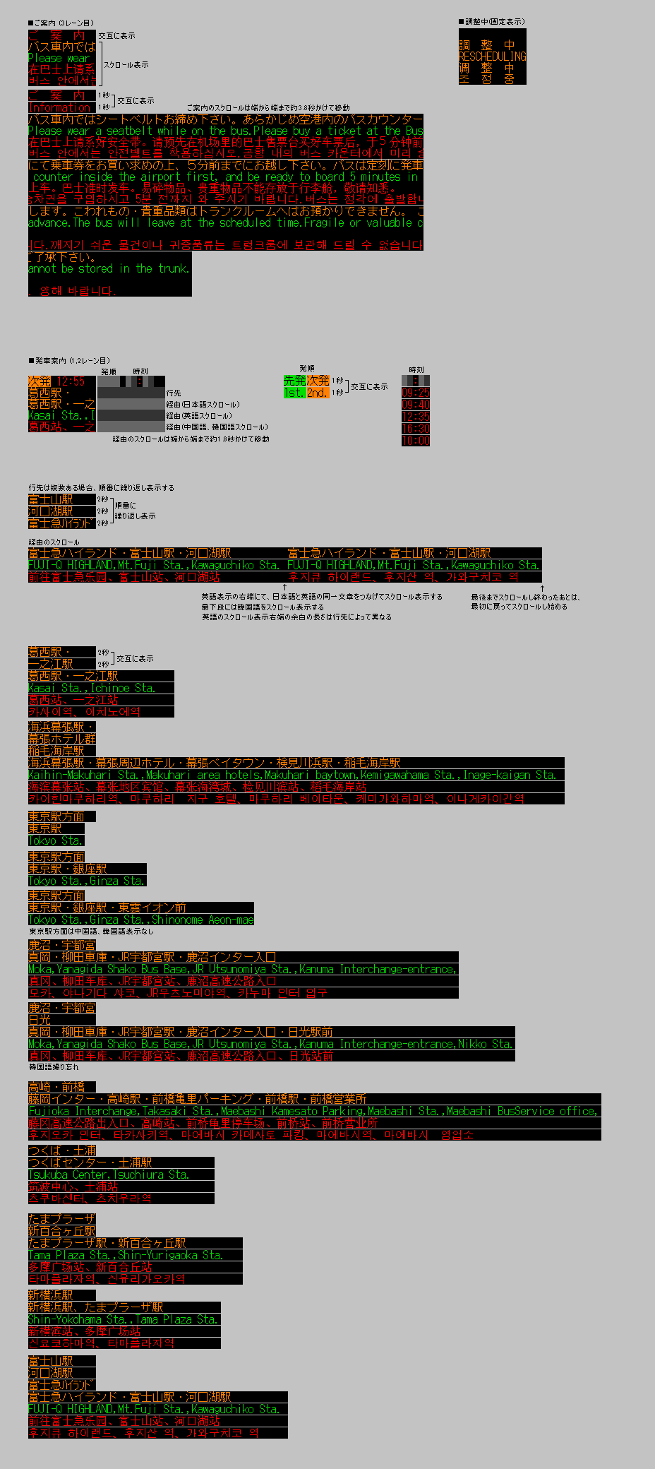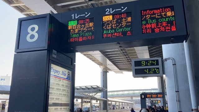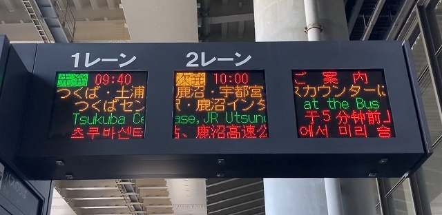 成田空港 第1・第2ターミナルバスのりばのLED電光掲示板は2種類あります。「
